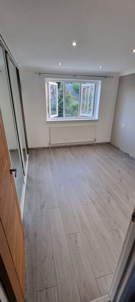 This job included remotion of old carpet and underlay then thoroughly cleaning of the wood floor and installed a new set of all-round vinyl flooring.